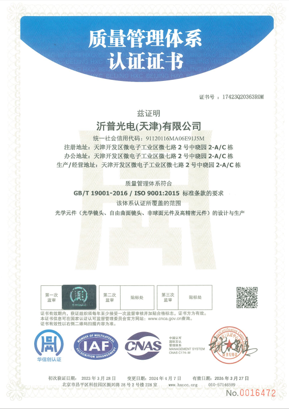 沂普光电(天津)有限公司成立于2018年,在职员工600余人,是国家级高新技术企业及国家级专精特新小巨人企业。已在自由曲面光学系统设计、超精密光学元器件制造及检测、光学性能测量系统集成及开发等关键技术领域深耕近20年。 公司已建设成立:天津开发区生产基地,阜阳消费类光机镜头制造及研发基地,庐江车载类产品生产制造与研发基地,深圳研销中心,总占地面积近4万平方米。积极推进自由曲面光学技术的探索与指引。在车载HUD及智能显示、VR虚拟现实、AR增强现实、超短焦投影、激光扫描及避障等领域获得多项成果,取得相关技术专利600余项,其中发明专利百余项。